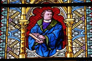 Wir sehen auf dem Fenster Martin Luther.